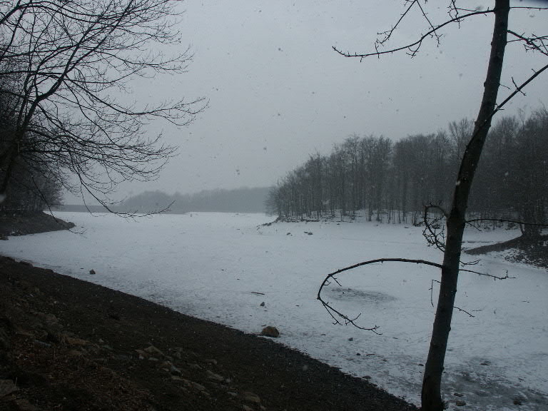 Bevroren stuwmeer, het ijs was sterk genoeg om mensen te dragen (hebben wij maar niet geprobeerd.)
