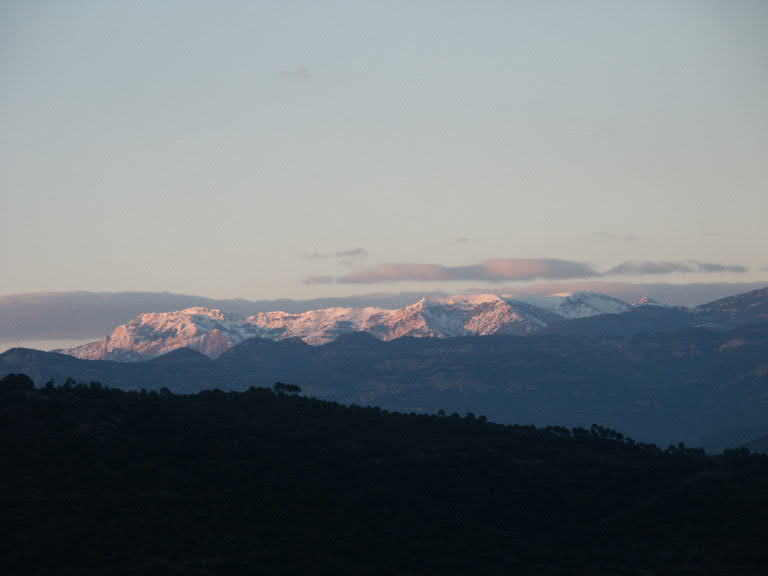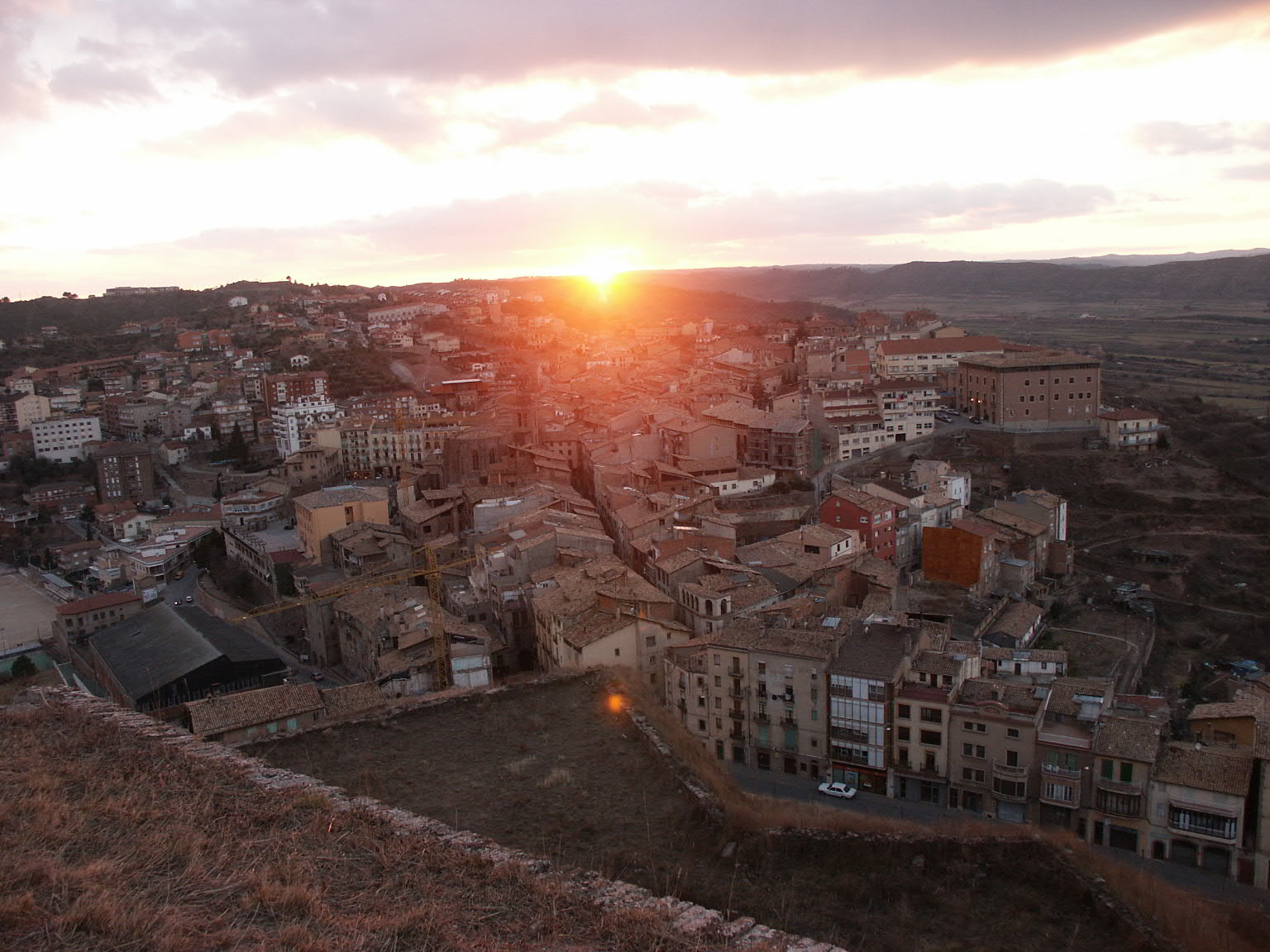 De zon gaat onder, op de voorgrond Cardona.