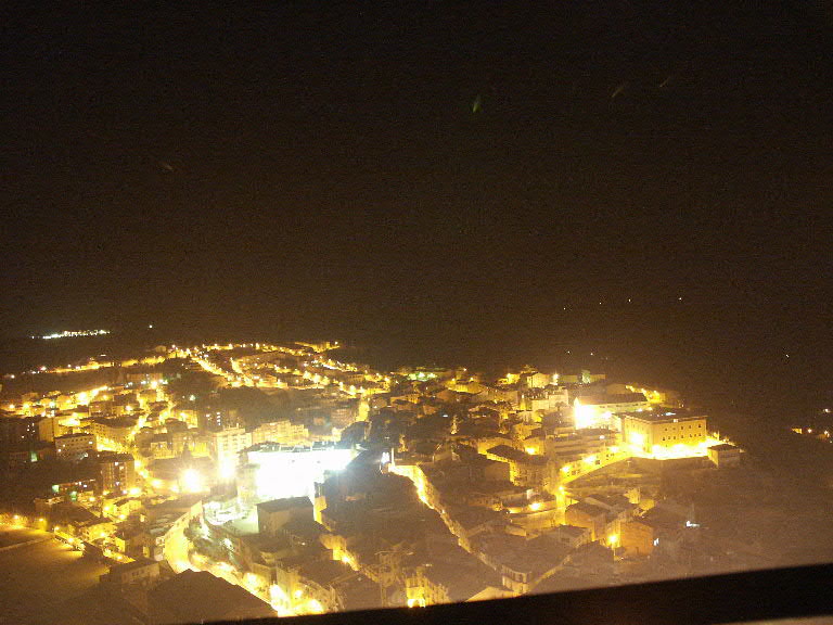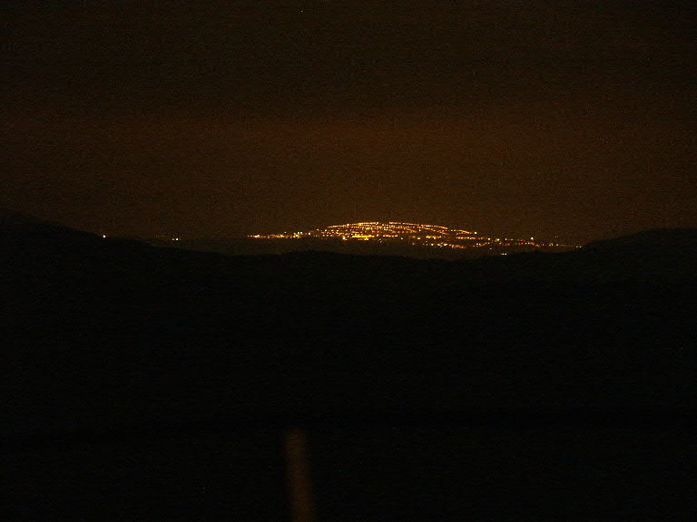 En dan is het donker. Links de stad Manresa, ongeveer 25 kilometer verderop. Rechts de mijnactiviteiten op de zoutberg van Cardona.