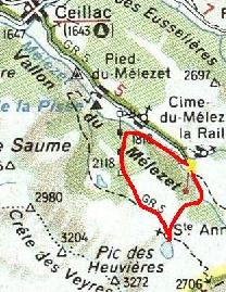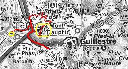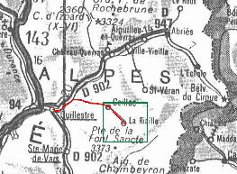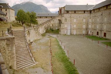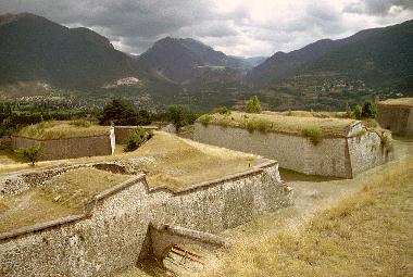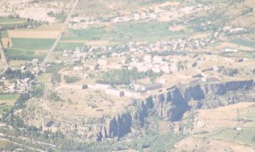 De kloof die de vesting scheidt van Guillestre. Let op de waterval. |