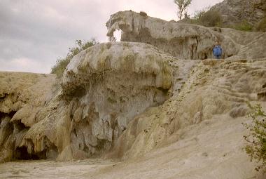 De versteende waterval komt ontstaat door water uit een zeer kalkrijke