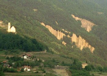 kasteel van Arco, rechts de aardpyramiden bij Segonzano.